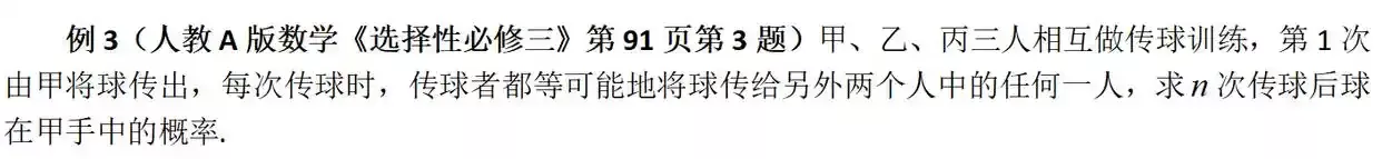 得到 为首项为 ( , 因为甲传出后不可能在甲手里), 公比为 的等比数列, 则: