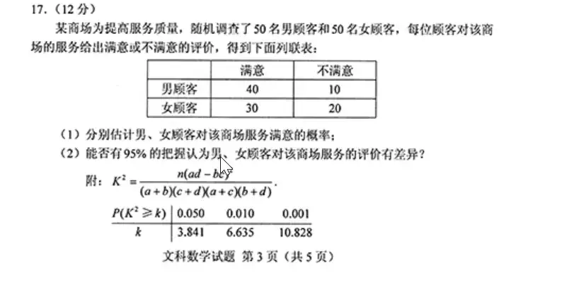 由于 , 故有 的把握认为男女顾客对该商场服务的评价有差异.