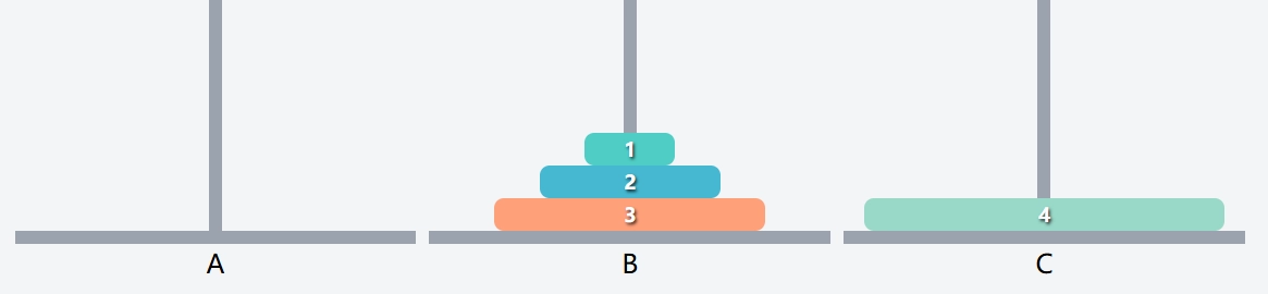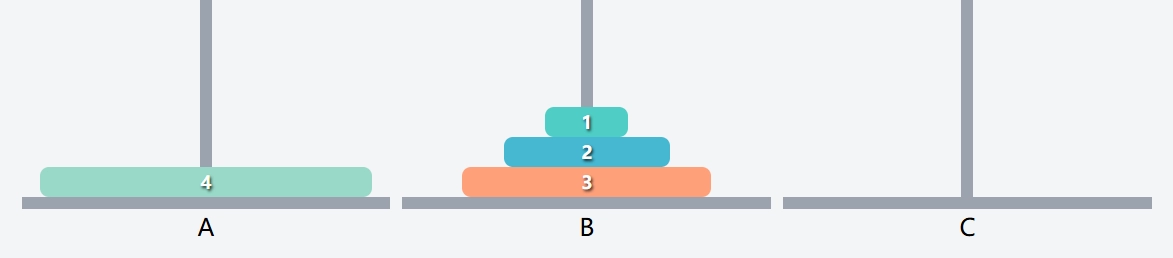 拆解成功! 现在第二个条件也满足了, 移动 n 个盘子的问题变成移动 n - 1 个盘子的问题了, 虽然它被执行了两次, 但规模还是缩小了.
